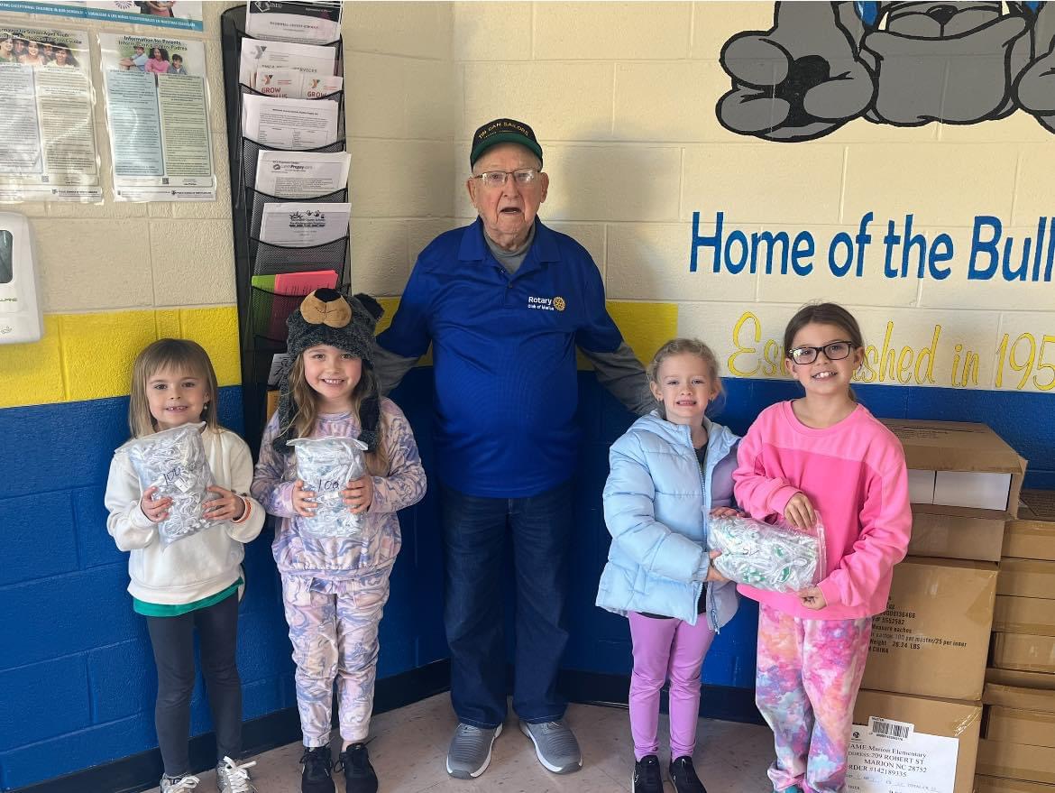 The Rotary Club of Marion members distributed 3,000 individually packaged earbuds in sets of 200 for each of McDowell County's 15 public schools. Providing this resource ensures equitable access for students in need--allowing the principals and school counselors a resource to do so.