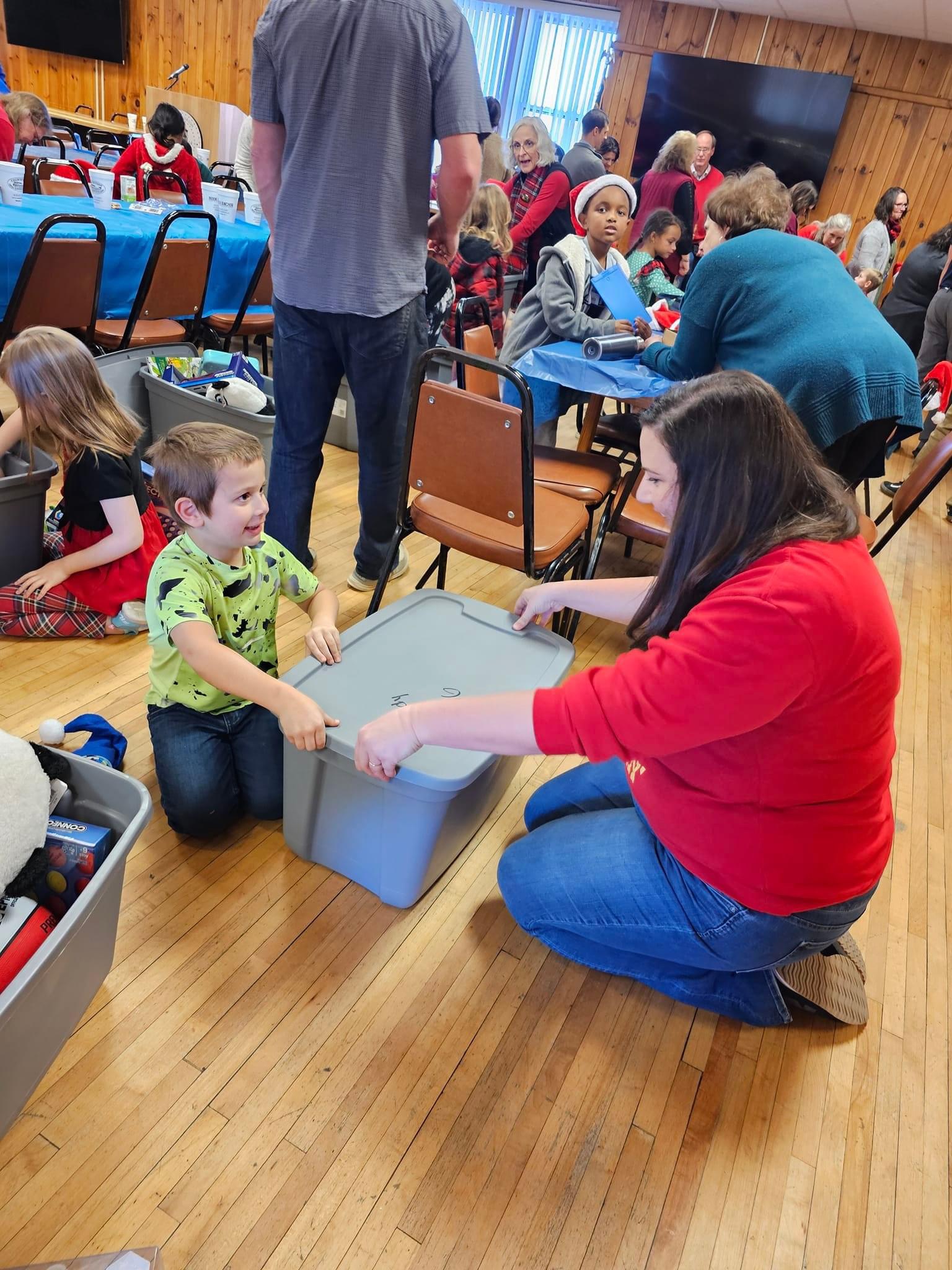 Kindergarten and first-grade students from across McDowell's elementary schools gather at the Marion Community Building for a day filled with festive delights. Amidst the merry atmosphere, children enjoy a delightful lunch provided by Countryside Catering and participate in a joyful singalong of Christmas carols played on the piano.